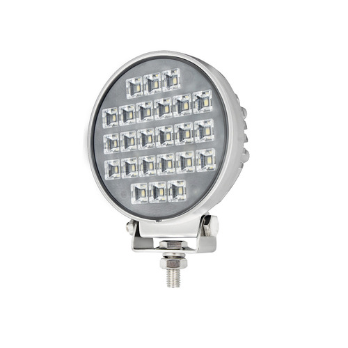 Operation is often supported over a wide voltage range (for example 9–32 V DC or similar) and integrates features such as surge protection, reverse-polarity protection, and flicker-free driver performance. The spotlight includes an adjustable mounting bracket (usually stainless steel), allowing tilt and aiming flexibility for different installation geometries.