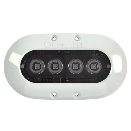 The OceanLED X-Series X4 combines exceptional brightness, energy efficiency, and rugged reliability in a compact, surface-mount design. Engineered for boats up to 30 ft (9 m), the X4 produces up to 1,150 fixture lumens of vivid underwater light through OceanLED’s advanced optics, which deliver a smooth 60° beam for wide and even illumination across the transom or hull.