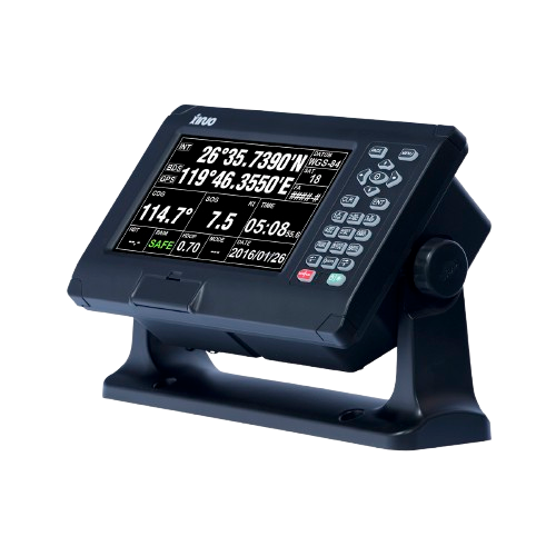 The unit displays up to 2,000 AIS targets, calculates CPA (Closest Point of Approach) alarms, and supports fleet-management functions such as group-ship monitoring. A built-in voice alert system announces status, alarms, and navigation data. The device features a high-brightness widescreen display (800 × 480), multi-language support, and a dual operating mode (Classic and Utility) for flexible use.
